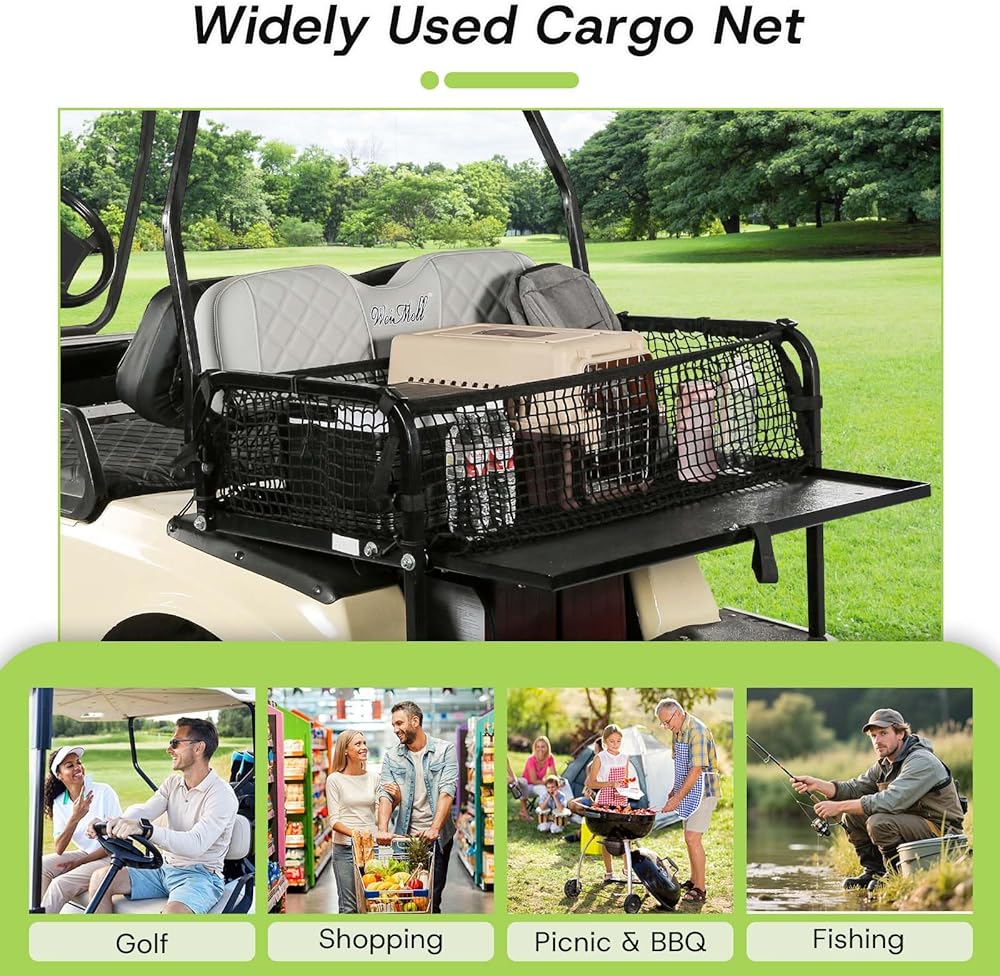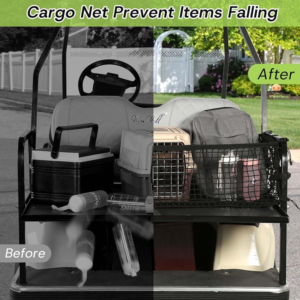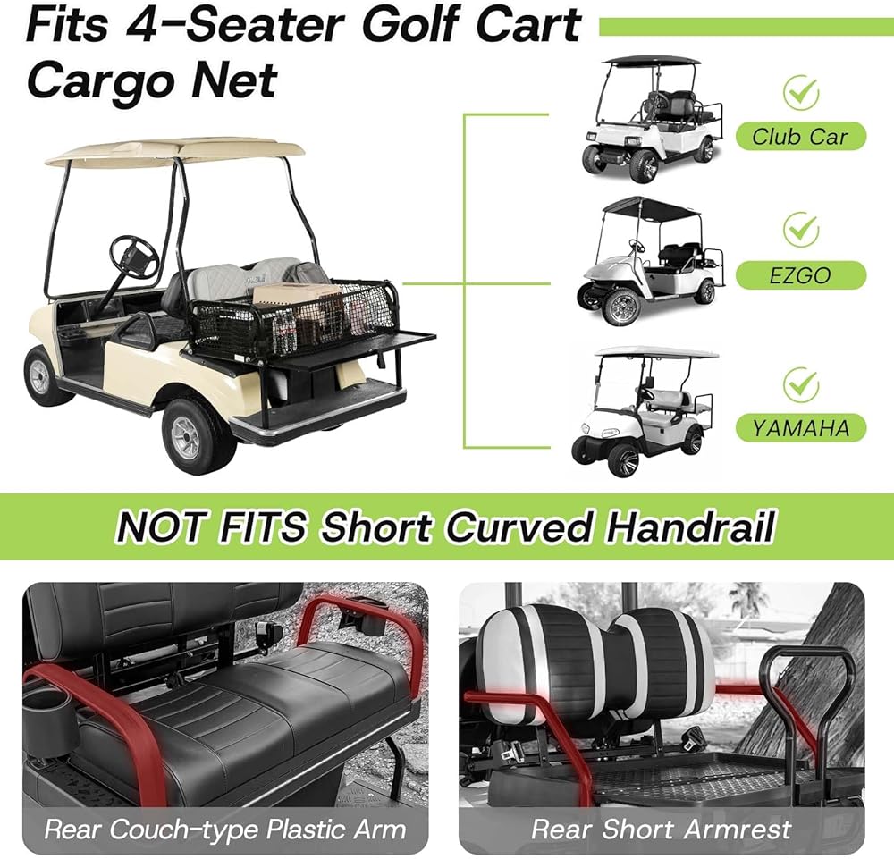 Universal Golf Car Cargo Net: This storage net fits most 4-passenger golf carts and is compatible with most major brands, such as Yamaha, EZGO, Club Car, etc. (our products are not related to the above brands).