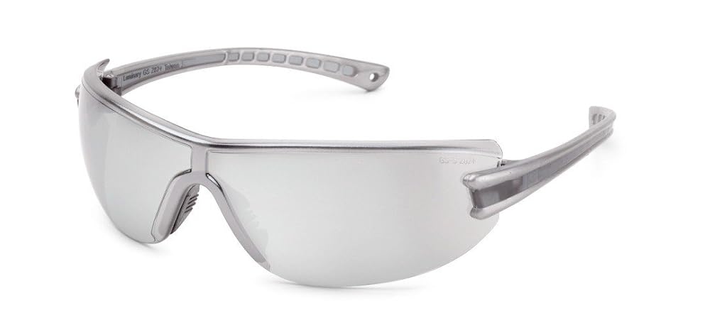 Gateway Safety 19GY8M Luminary Wraparound Eye Safety Glasses with Temple Technology, Silver Mirror Lens, Silver Temple, Gray Inset