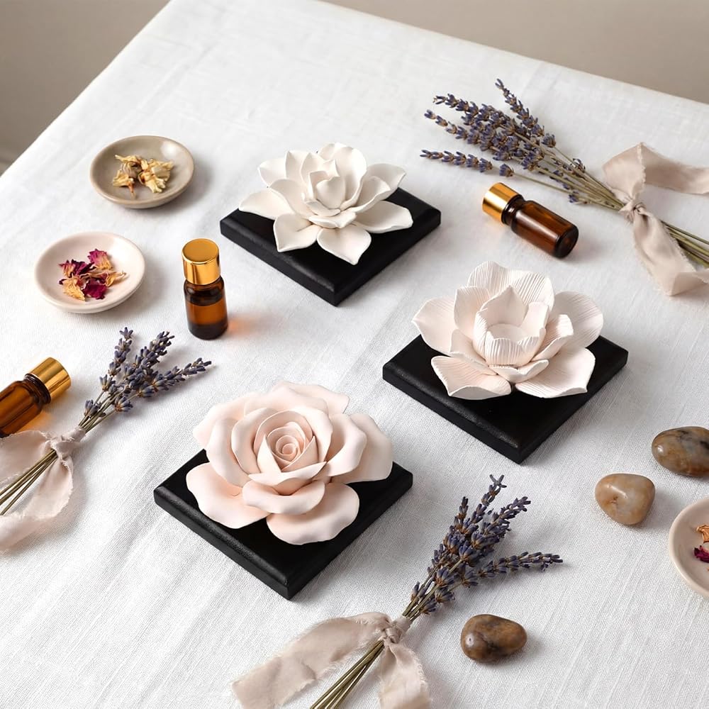 These diffusers are made from porous gypsum that effectively absorbs and slowly releases essential oils. The included wooden base offers stable support while protecting surfaces from direct oil contact. The uniform porosity of the gypsum allows steady, long-lasting scent diffusion.