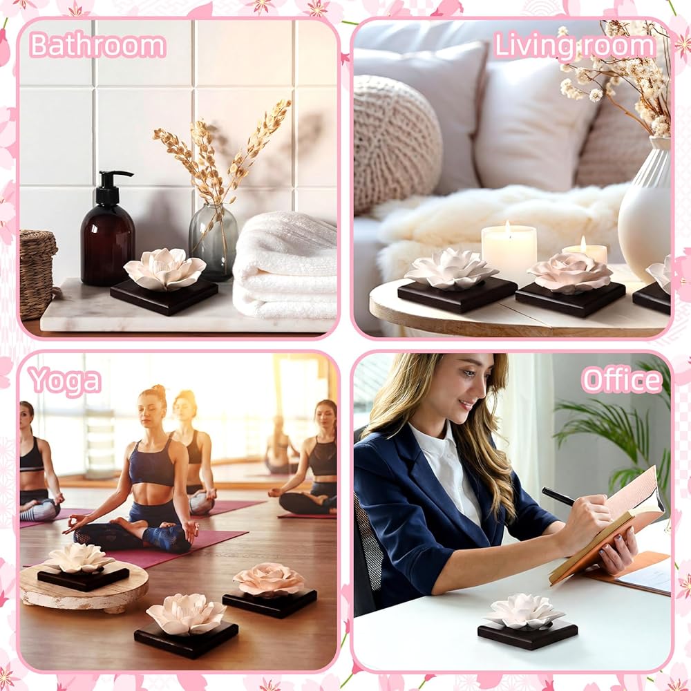 This essential oil diffuser stone flower is designed for various settings and needs. It works well in cars to create a pleasant driving atmosphere, on office desks to aid concentration, in bedrooms to encourage relaxation, and in bathrooms to deliver a spa-like experience. Its neutral tones and organic form blend easily with modern, traditional decor styles.