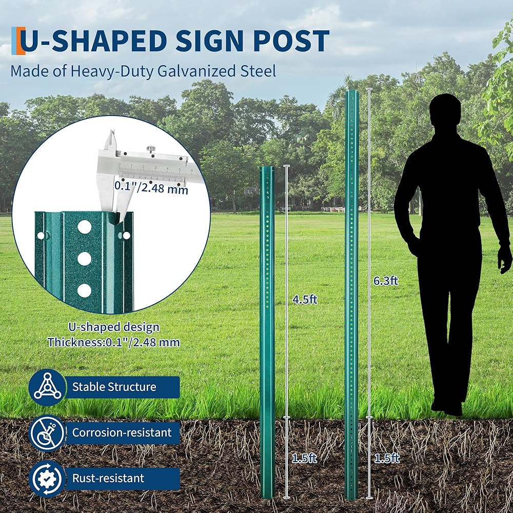 • 【Heavy-Duty Steel for Long-Lasting Performance】Crafted from robust galvanized steel, our Steel Sign Post is built to withstand harsh weather conditions. The green enamel coating provides an extra layer of protection against rust and corrosion, ensuring years of reliable use.