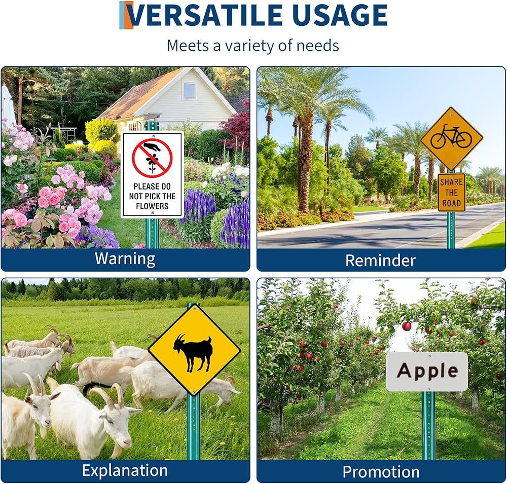 • 【Wide Range of Applications】Perfect for gardens, farms, parking areas, and traffic intersections. Whether you need to guide traffic, mark boundaries, or display information, this sign post is up to the task.