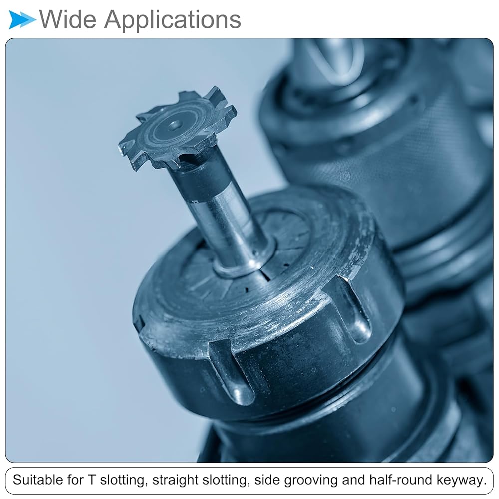 --- Suitable for machining T slotting, straight slotting, side grooving and half-round keyway on the workpiece. Widely used for milling stainless steel, carbon steel, alloy steel, copper, tool steel, cast iron, aluminum, etc.