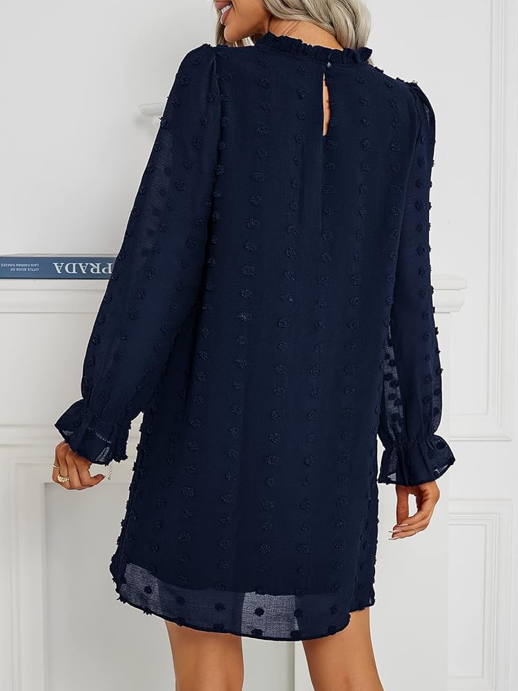 Features: Fall mini dresses for women, long sleeve mini dress, fall wedding guest dresses for women, chiffon dress, church dress, cocktail dresses for women evening party, lantern sleeve cute dress, beach dress, shirt dress, formal dress, flowy dress, lace puff sleeve dress. Size: S, M, L, XL, XXL. Colors: Yellow, Black, Blue, Green, Navy, Pink, Wine Red, White etc. The Swiss Dot Shift Dress is the first choice for your wardrobe in fall and winter.