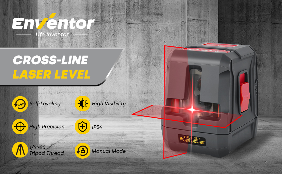 🌟WHAT YOU GET - 1 x ENVENTOR Laser Level EN011R, 1 x Strong Magnetic L-Bracket, 1 x Carrying Bag, 2 x AA Batteries, 1 x User Manual
