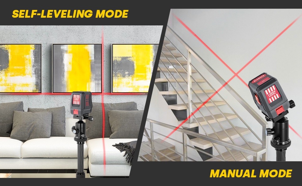 🌟Self-Leveling and Manual Mode - This laser leveling tool is easy and simple to use, you can easily switch between self-leveling and manual modes with a single toggle button. It can be attached to most metal surfaces with a magnetic stand that supports you 180 degrees to rotate the laser level to project lines at any position or angle.
