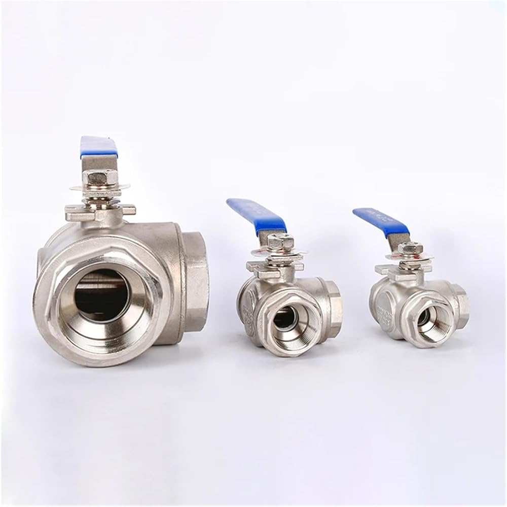 1PCS DN15 DN20 DN25 DN32 DN40 DN50 Stainless Steel Three-Way Ball Valve L-Type T-Type 304 Internal Thread Manual Valve(1/2",L Type)