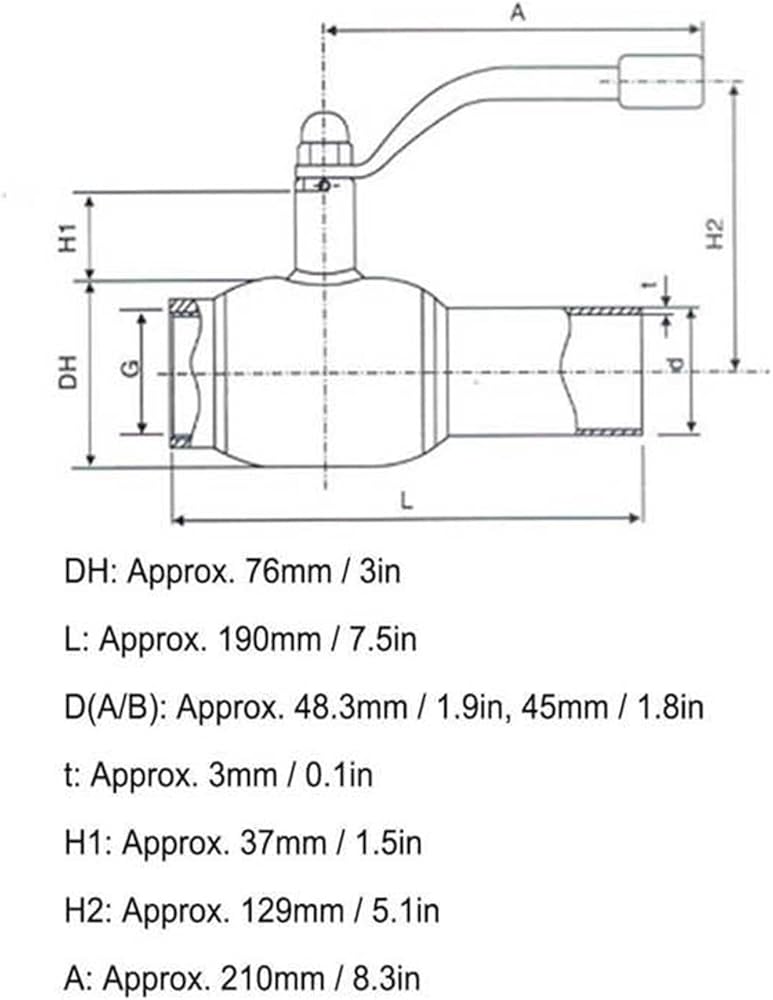 DH: Approx. 76mm / 3in