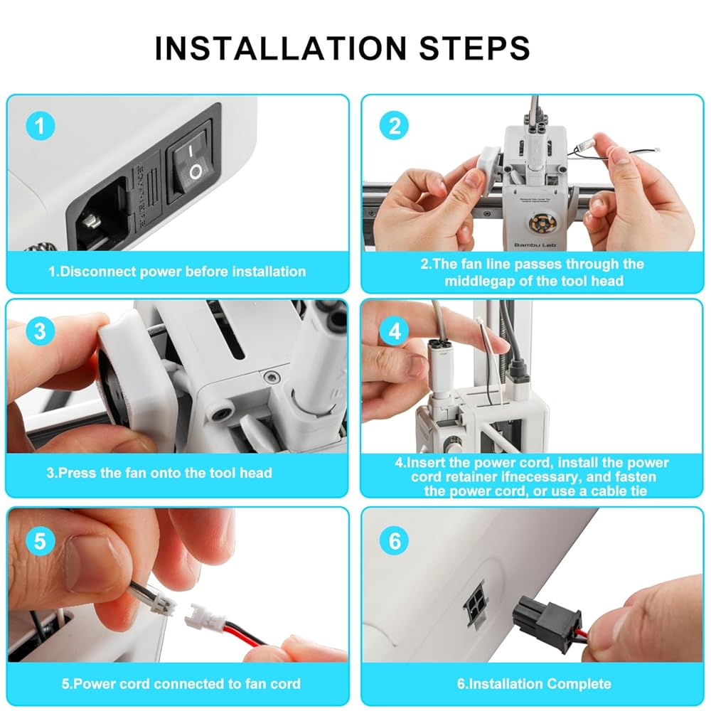 【Easy Installation】Install by attaching the fan to the motor, power via A1/A1mini's Ams lite connector: simple & convenient.