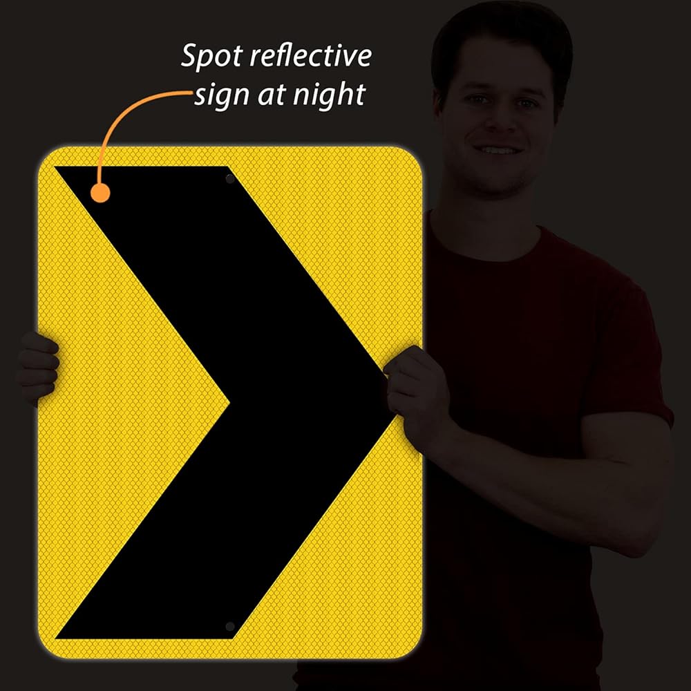 DURABLE ALUMINUM: 'Chevron Right Arrow' signs are made of 80 mil thick rustproof aluminum. They are laminated for protection and use 3M reflective High-Intensity Grade film, assuring more than 10 year durability.