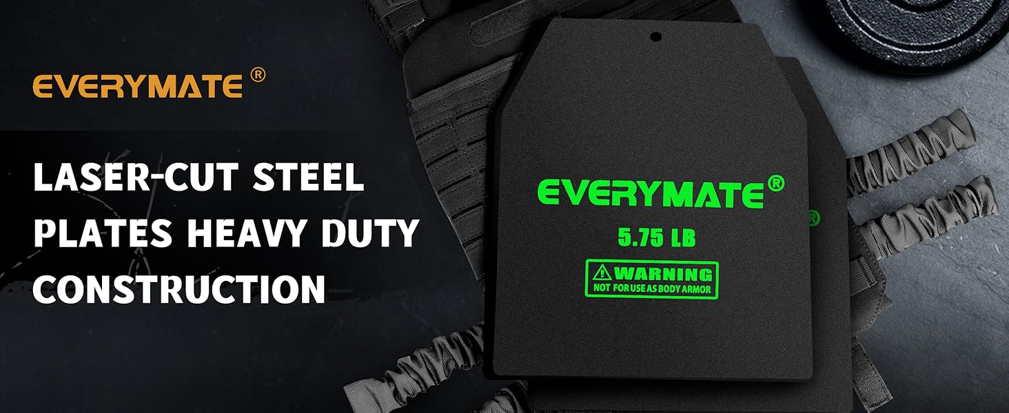 EVERYMATE Weighted Vest Plates come in a standard 10x12 inch size, compatible with most tactical and training vests on the market, and remain firmly in place even during dynamic movements like running and burpees to avoid displacement issues. Constructed with composite alloy steel and coated in an outer matte finish, they block moisture to prevent rust and corrosion—solving the common problem of premature aging in outdoor training equipment—while adding extra resistance to workouts to effectively enhance overall strength training. Offered as a two-piece pack with multiple weight options (3.75, 5.75, 8.75, 14.75, and 19.75LB TWO-PIECE PACK), these plates allow flexible adjustment, catering to both beginners adapting to weight-bearing routines and advanced users. They also feature optimized details: laser-cut rounded edges prevent abrasion on the vest's inner side, with smooth, burr-free edges, making them suitable for WODs, strength-building exercises, and hiking; they even serve dual purposes as protective inserts and training weights. Note that the weighted vest itself is not included, and the product includes a 30-day return/exchange service plus 24/7 customer support for added peace of mind.