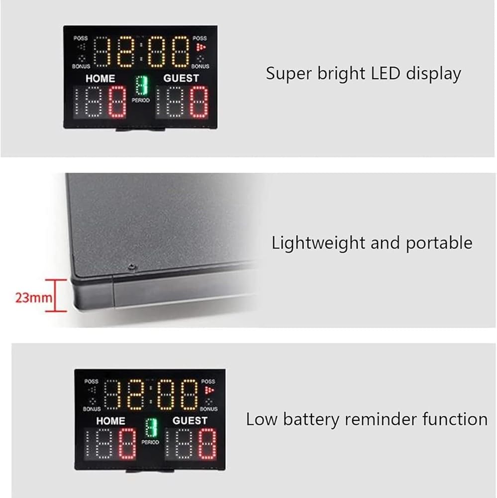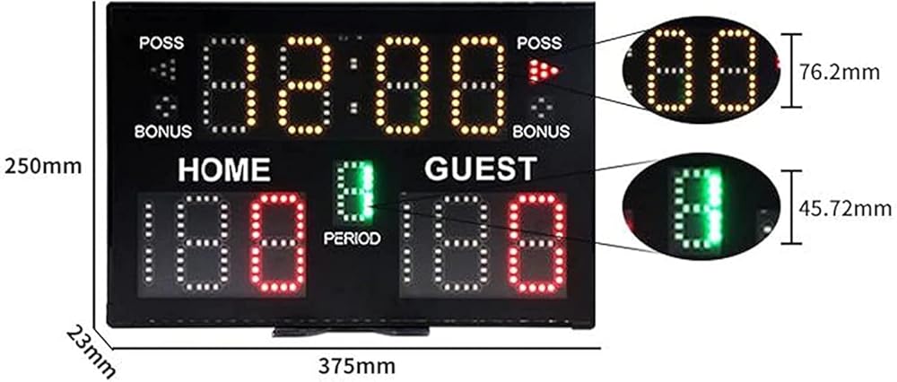 Electronic Scoreboard: Displays home and away scores, number of games played, time and serve;