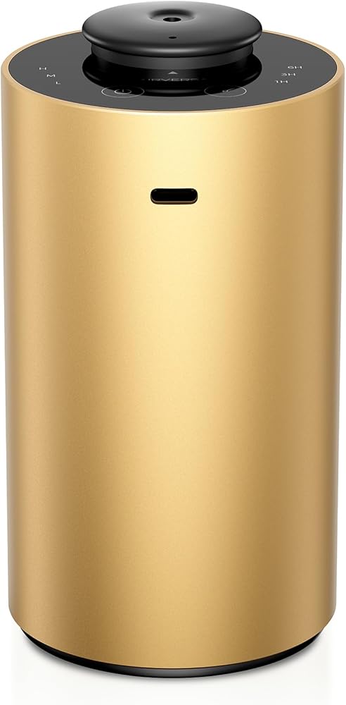 Airversa Waterless Essential Oil Diffuser for Home, Rechargeable and Portable Scent Diffuser with 3 Countdown Timers & Mist Levels for Car Room Studio Office, Scenta Lux Premium Metal Gold