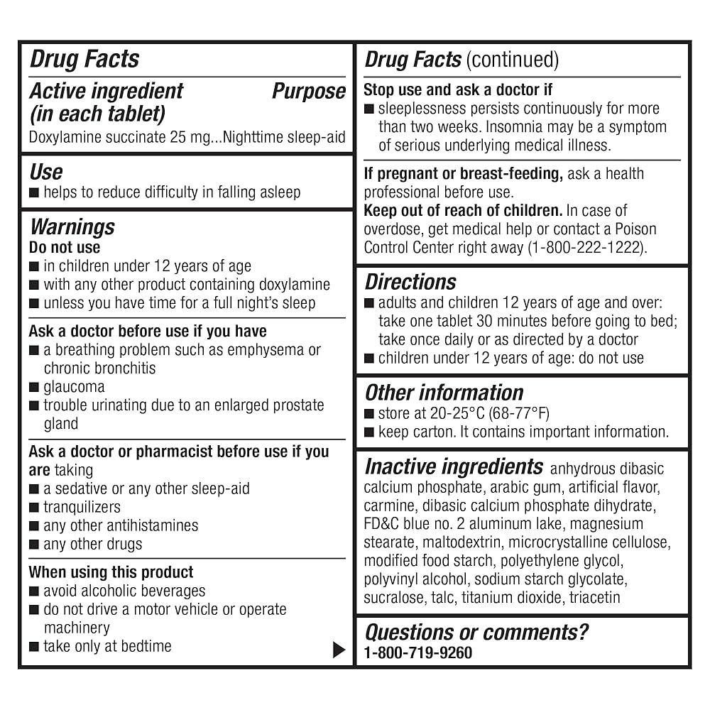 • Contains Doxylamine succinate 25 mg. Compare to Vicks ZzzQuil Ultra Tablets