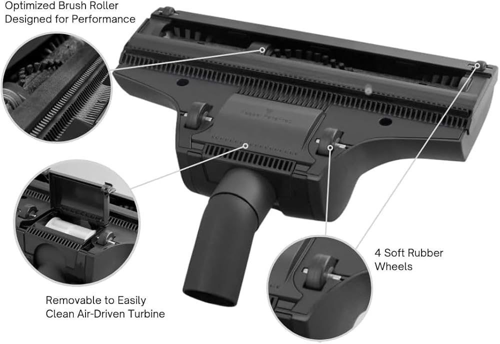 Experience professional-grade carpet cleaning performance with this air-driven turbo brush designed for central vacuum and commercial vacuum systems. The turbine-powered design uses airflow from the vacuum to spin the brush roller, effectively agitating carpet fibers and lifting embedded dirt, dust, and pet hair—without requiring electrical power.