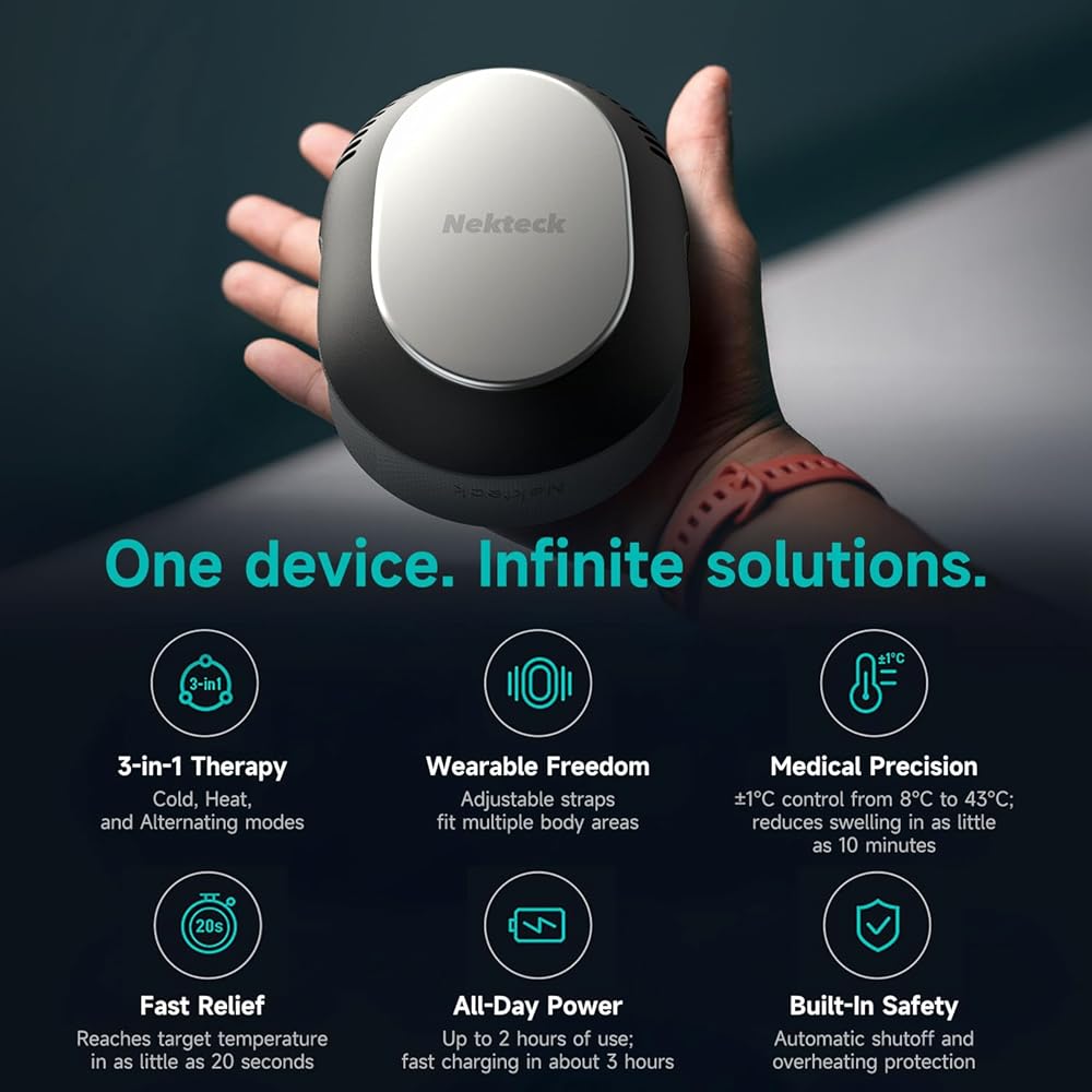 3-in-1 Relief Device: This device combines cold therapy, heat therapy, and contrast therapy in a single portable unit. No more switching between messy ice packs and unreliable heating pads. Experience targeted relief with 3 optimized modes tailored for recovery and relaxation