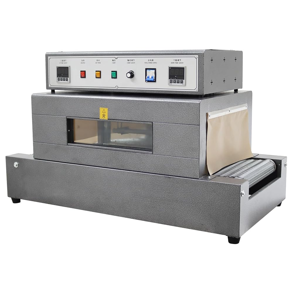 Shrink Wrap Machine Mesh Type Heat Shrink Packaging Machine Electric Tunnel Packaging Equipment with Transparent Furnace for POF PVC (15.8X7.9inch Max Shrink Size) 220V