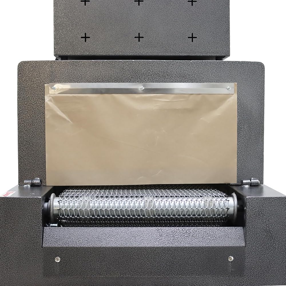 Mesh Conveyor: Features a durable mesh conveyor belt ideal for heavy items up to 10kg (22 lbs). Metal mesh belts have fast thermal conductivity, high bottom temperature, and large contact surfaces. When placed on the mesh belt, the film is prone to imprinting. It is not recommended for products with strict appearance or large contact surfaces