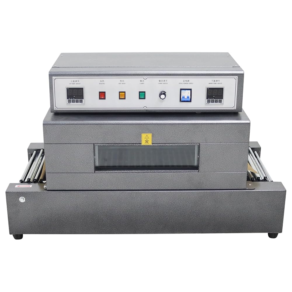 Shrink Wrap Machine Chain Type Heat Shrink Packaging Machine Electric Tunnel Packaging Equipment with Transparent Furnace for POF PVC (15.8X7.9inch Max Shrink Size) 220V