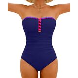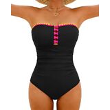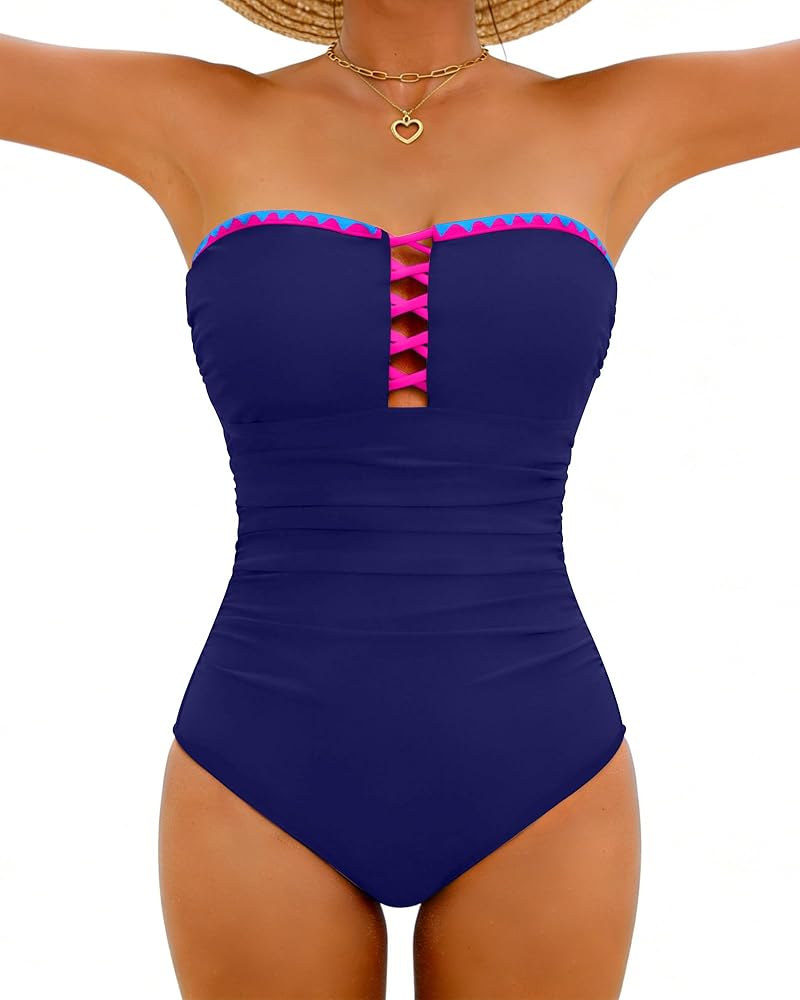 Strapless Swimsuits for Women: This bandeau one piece swimsuit have two ways to wear —keep the adjustable wide straps for secure support, or remove for a stylish strapless bandeau look. A versatile strapless swimsuit that stands out among popular swimsuits, ideal for long torso bodies