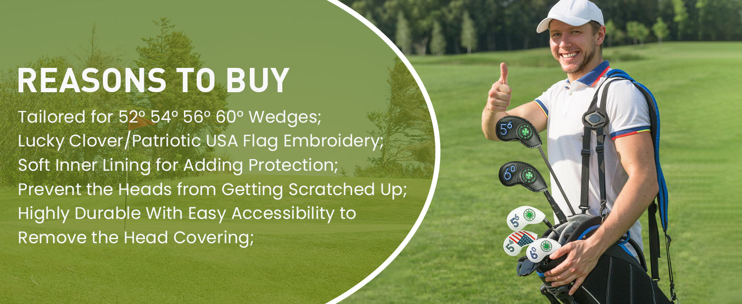 Clear Identification: Featuring simple designs such as white&clover or USA flag, each cover includes clear number tags for quick club selection on the course. This makes it easy to grab the right wedge instantly, adding a subtle personal touch to your bag without flashiness.