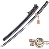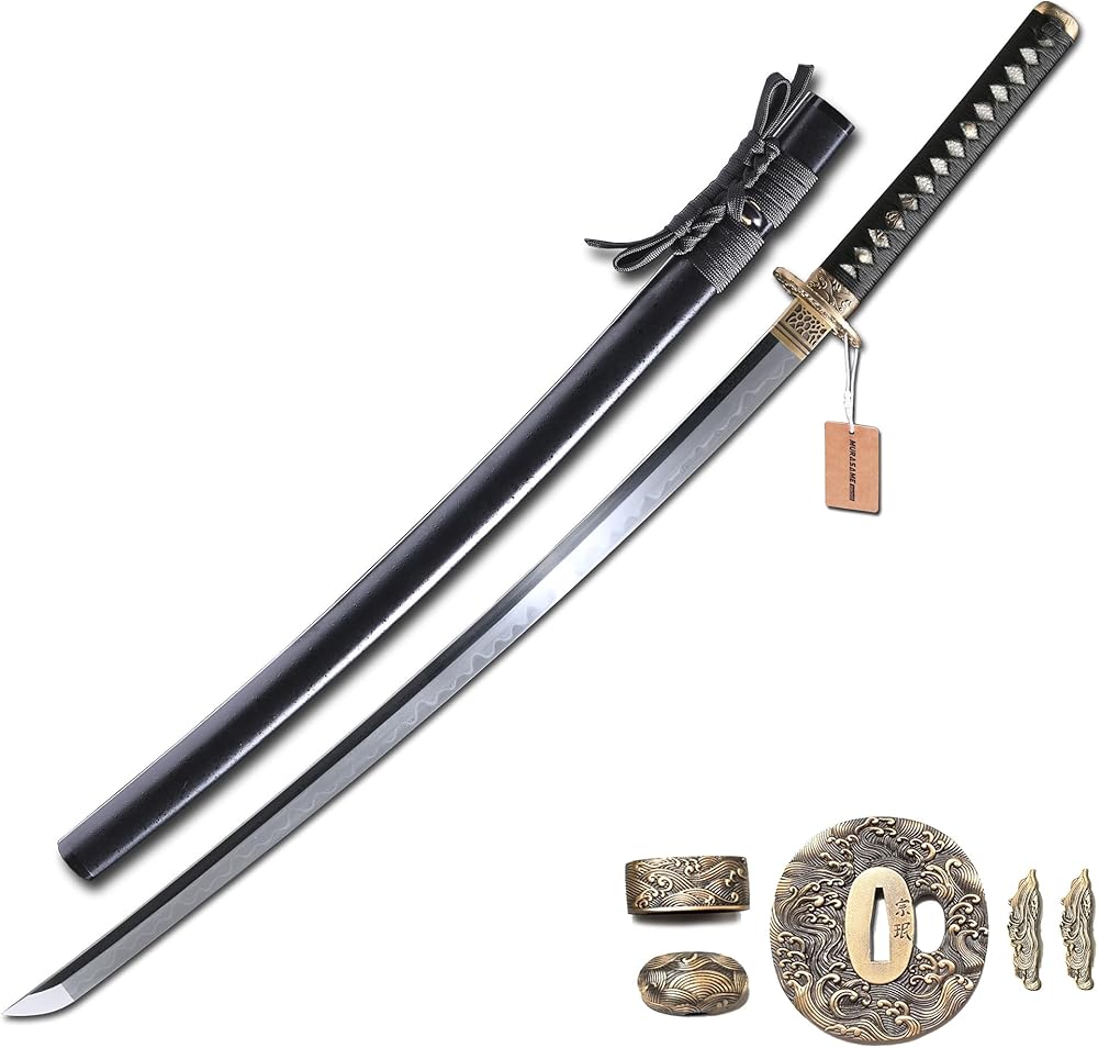 BLADE-Full tang Folded steel,clay tempered,water quenched, real hamon,high hardness.Hand polished razor sharp can be used for real cutting swords, easily meeting actual combat requirements.