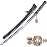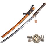 FITTINGS-Tsuba set are made of high quality brass,beautifully carved flower.Habaki and Seppa are made of brass to.Excellent assembly process, combined into an nice katana sword.