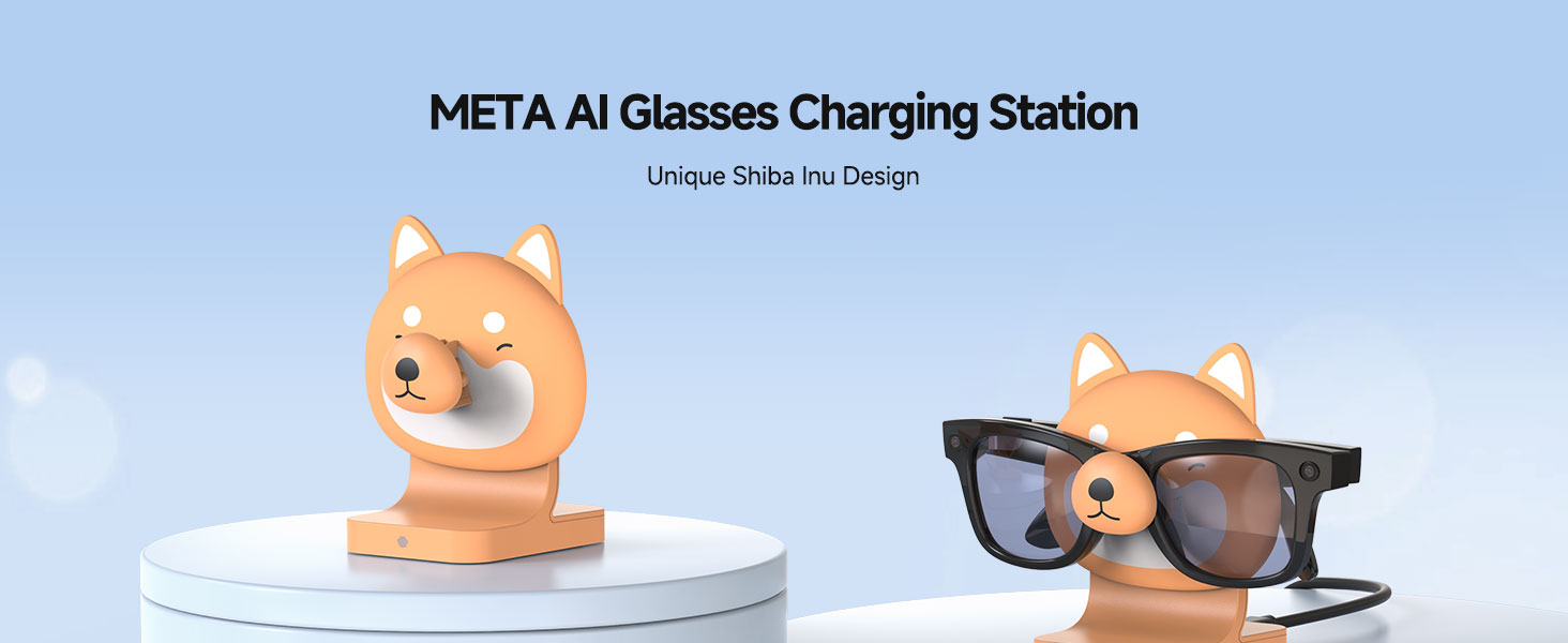 Shiba Inu Charging Station for Ray-Ban Meta Smart Glasses, Fast Charging Stand Compatible with Wayfarer, Headliner, Skylar, Oakley HSTN, Charger & Display Stand for Meta AI Glasses Original & Gen 2