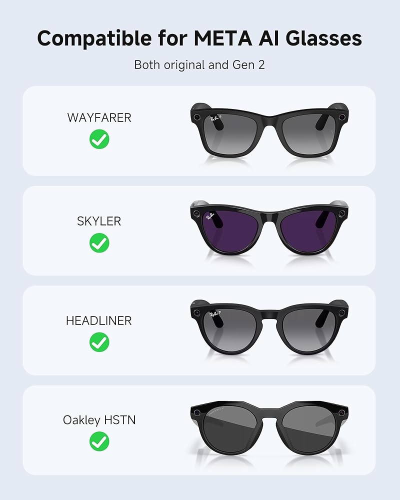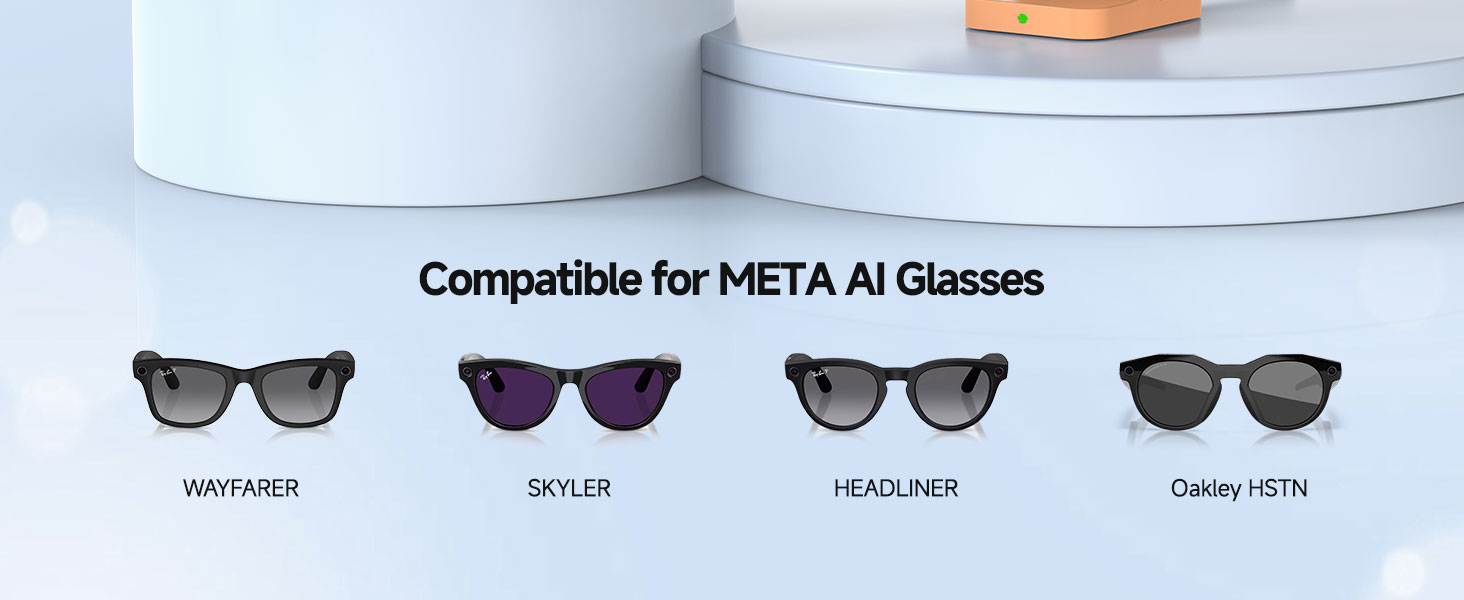 Wide Compatibility – Specifically designed for Ray-Ban Meta smart glasses, this charging stand is fully compatible with all original and Gen 2 models including Wayfarer, Headliner, Skylar, and Oakley HSTN, ensuring a perfect fit and reliable charging for your Meta AI glasses.