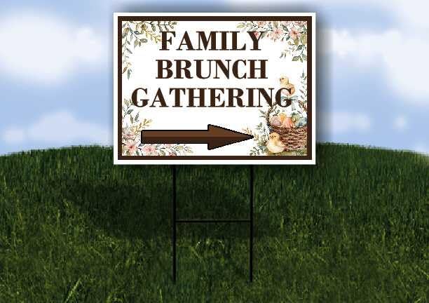 Family Brunch Gathering Easter Spring Vintage Chicks Eggs Basket Brown Directional Arrows A-Frame Double Sided 23x23 in. sign in Kuwait