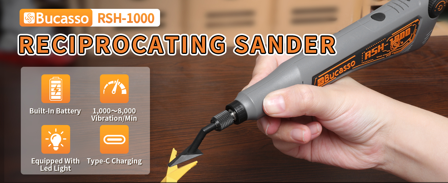 【Packing and After-Sales Service】The package containsRSH-1000 reciprocating sander, 6 sanding head, 15 sheets of sandpaper (No. 180, No. 240, No. 400, No. 800, No. 1000, 3 sheets each), stand, USB cable, and instruction manual. We are committed to provide high standard products and after-sales service. If you have any problems with our products, please feel free to contact us.