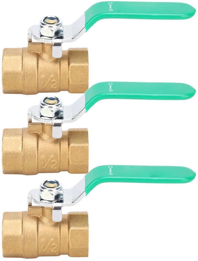 3Pcs Brass Water Pipe Ball Valve 1/2in Double Female Thread Thick Drain Shut Off Switch