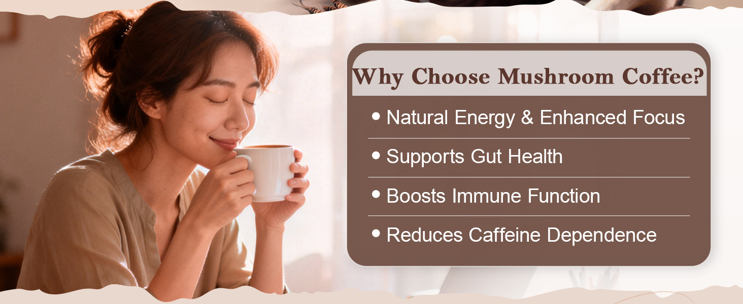 【Supports Digestive Health】Mushroom instant coffee is rich in dietary fiber and prebiotics, providing gentle, lasting support for your digestive system. While delivering steady, worry-free energy, it helps improve daily digestive comfort and gradually promotes a healthier gut microbiome. One cup a day keeps your gut happy and your body feeling at ease!