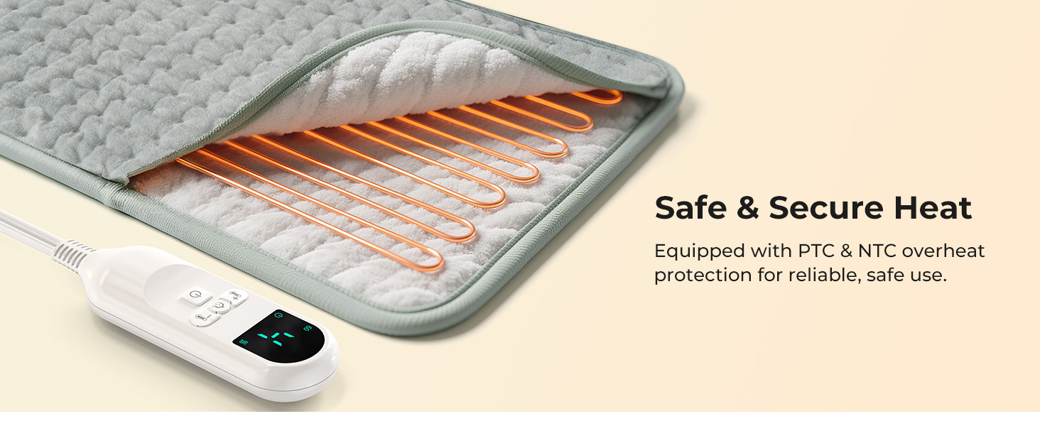 Safety You Can Trust: Designed with built-in overheat and overcurrent protection in both the pad and controller, this heating pad delivers reliable warmth with safety in mind. Relax comfortably, knowing protective features are working every time you use it.