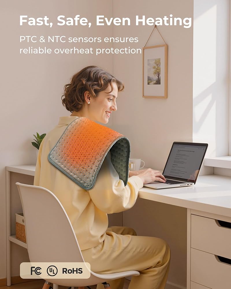 Compact Comfort for Daily Relief: Sized just right for the neck, lower back, or knees, this 12"x24" portable heating pad brings effective warmth to targeted spots. Easy to fold and store, it's perfect for everyday pain relief—at home, in the office, or on the go.