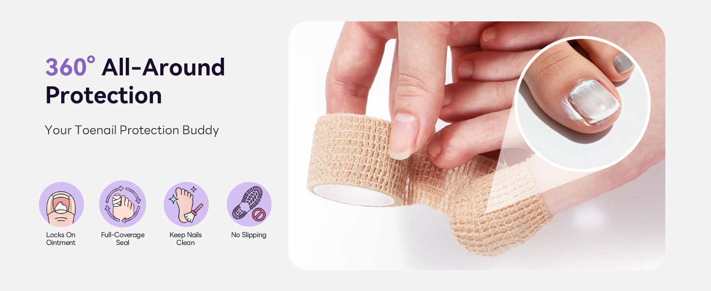Secures Fungal Cream Effectively:SAVILAND self adhesive wrap forms a complete 360° barrier, keeping fungal cream isolated from socks and sheets to prevent smudging. The 2X stretch material ensures full coverage and adapts to all toe sizes for lasting protection