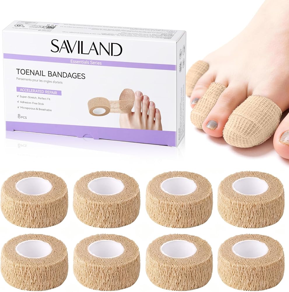 Nail Confidence Wrap: SAVILAND self sticking bandage wrap gently conceal discolored nails while protecting them from daily friction, letting you step out with ease. The 8pcs adhesive wraps blend naturally with your skin tone, instantly masking imperfections so you can enjoy barefoot moments without hesitation