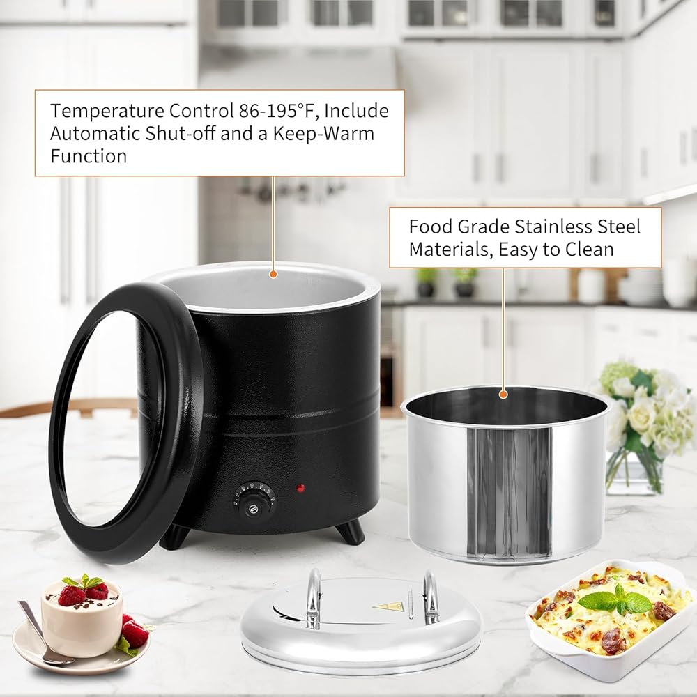 Introducing the 13.7-Quart Commercial Electric Soup Warmer, the perfect solution for keeping your soups, stews, sauces, and other hot dishes at the ideal serving temperature. Crafted from durable stainless steel, this food warmer is designed for both commercial and home use, making it an essential addition to restaurants, catering events, parties, and family gatherings.