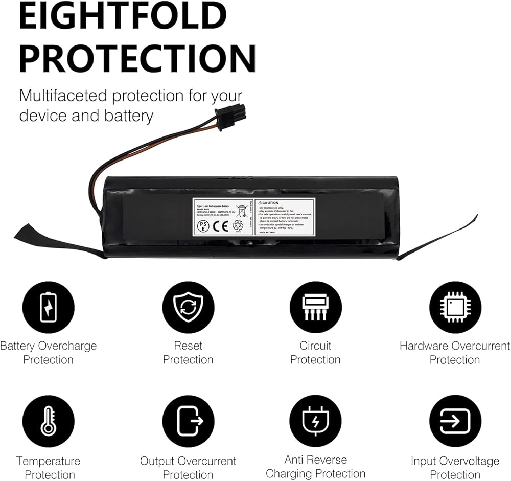 UPGRADED HIGH CAPACITY (7200mAh): Experience significantly longer cleaning times per charge with our upgraded 7200mAh capacity (compared to standard batteries). 14.4V Li-ion technology ensures powerful, consistent performance for your RoboVac. (103.68Wh)