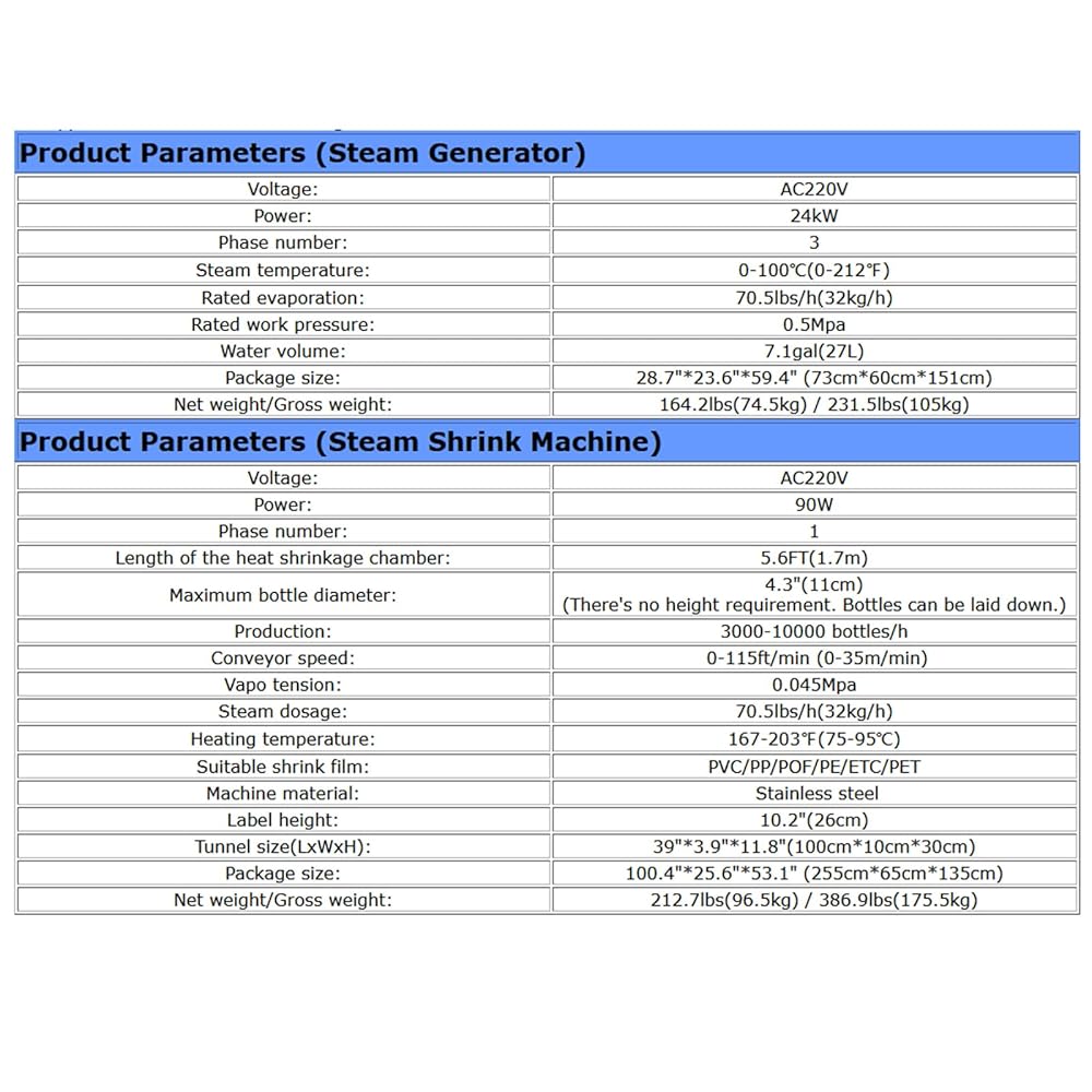 Product Parameters of Steam Shrink Machine
