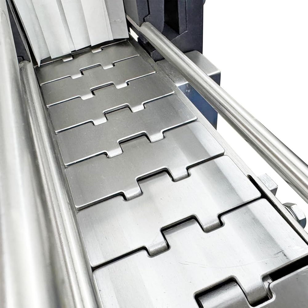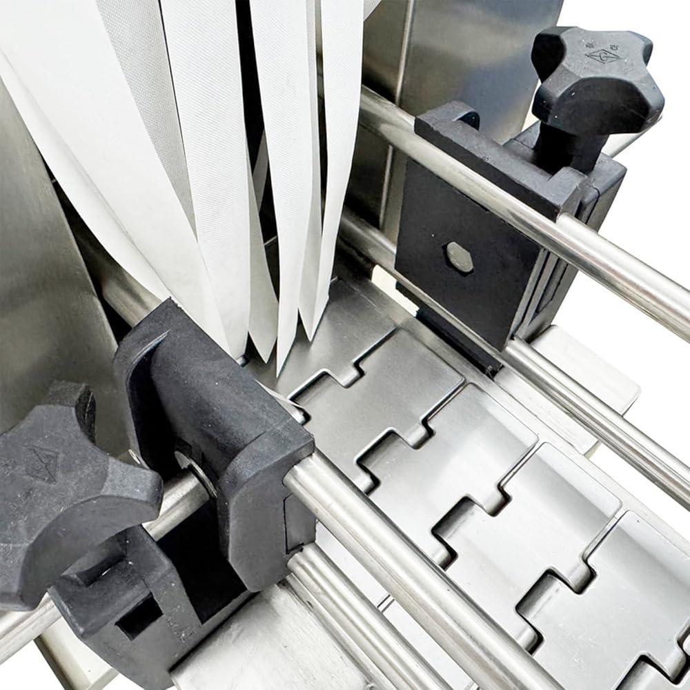Smooth and Safe Conveying: The label shrink machine adopts chain-type mesh conveyor belt, with uniform pores and smooth surface, the conveyor belt has high load-bearing capacity and excellent tensile strength, ensuring no deviation during operation, the guardrails are installed on both sides of the conveyor belt to prevent bottles from tipping over, the spacing between guardrails can be adjusted according to different diameters of the bottles (Maximum width is 4.3"/11cm)