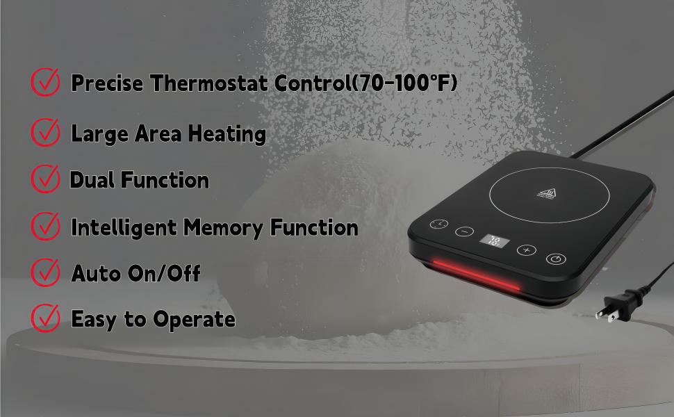 【Precise Thermostat Control for Perfect Fermentation 】- The sourdough starter heater can be adjusted between 70-100°F with an accuracy of ±1°F. The starter can be maintained between the ideal fermentation temperatures of 75-82°F to ensure optimal conditions for yeast activation and dough fermentation.