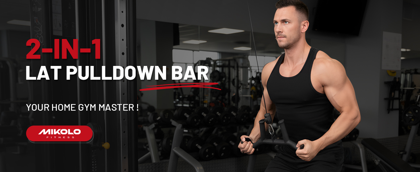Mikolo 2-in-1 Lat Pulldown Bar, Narrow and Wide Grip Lat Pull Down Attachments for Home Gym,Neutral Grip Cable Machine Attachments for Back and Upper Body Training