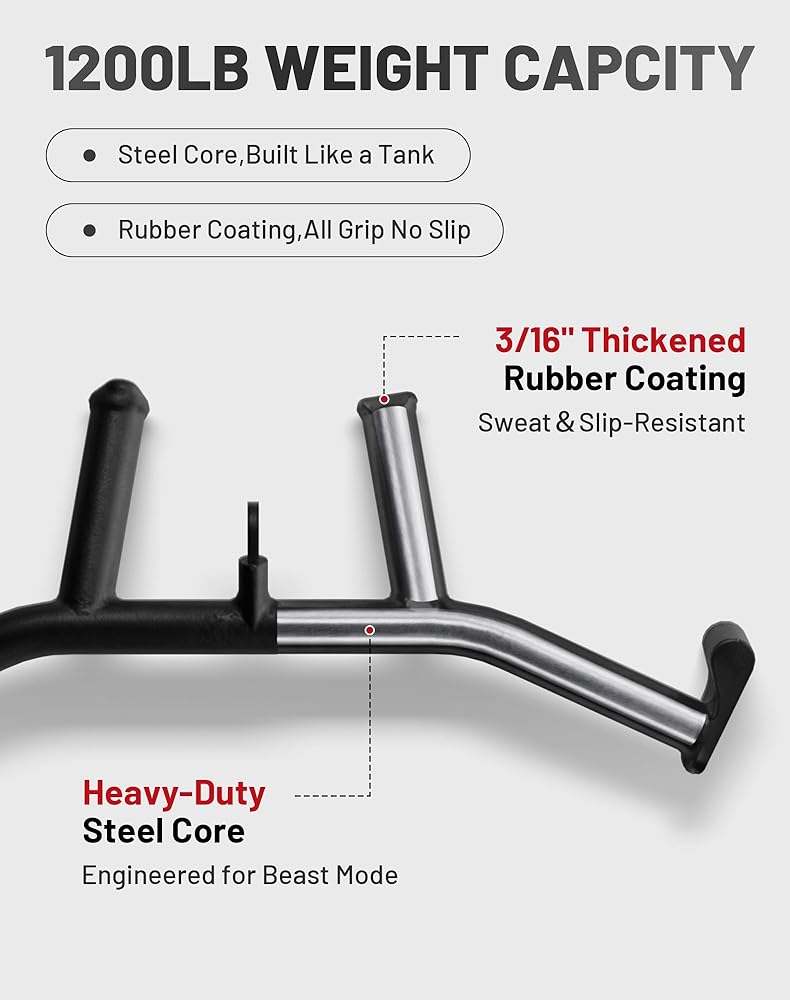 Heavy-Duty Steel for Home Gym Use:Built from high-grade steel with a thick rubber coating, this lat pull down bar supports up to 1200 lbs. Designed for long-term durability on any cable machine or home gym setup