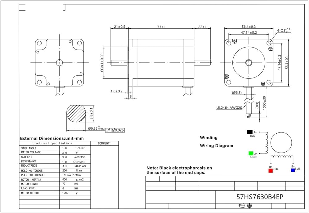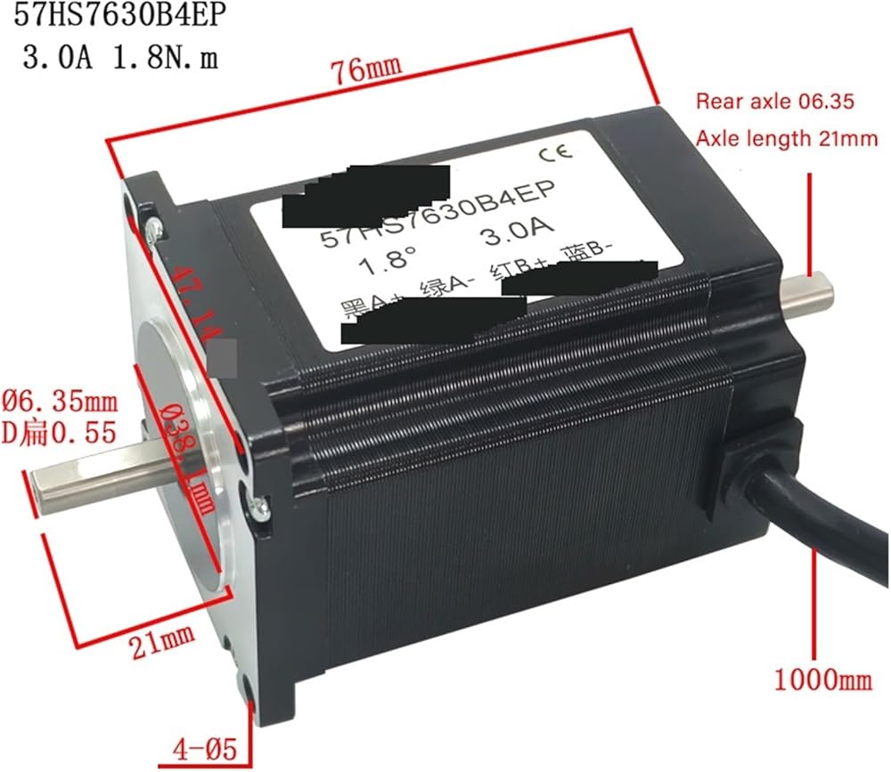 Stepper Motor NEMA23 2-Phase 4 Wire fuselage Length 76mm 1.8Nm .8Degree 3A Shaft 6.35mm Single/Double 57HS7630A4EP/B4EP