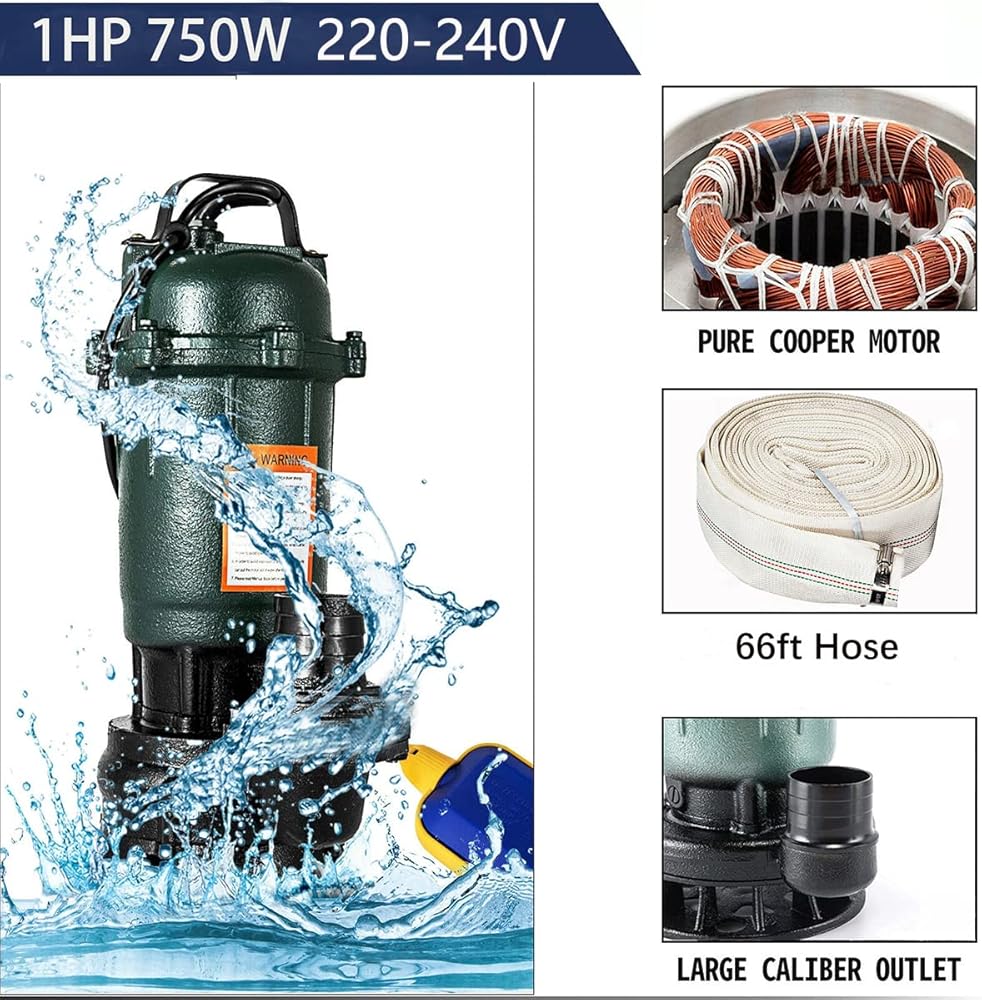 【66FT/20 M HOSE INCLUDING】-The submersible sewage pump includes a 65.6 ft/20 m hose with the "0" sealing ring that is perfect for everyday water draining or other emergency draining.