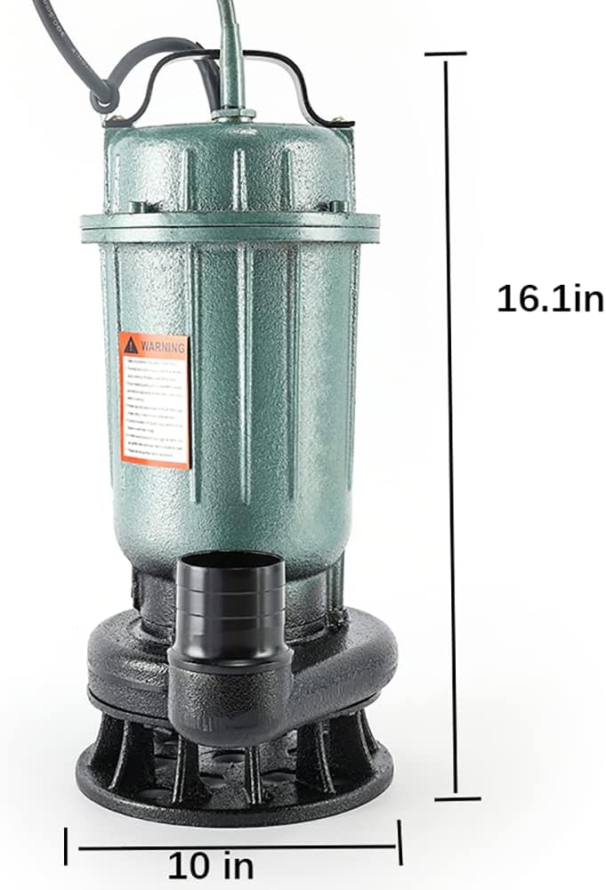 【SUPERIOR PERFORMANCE】-Dirty clean water pump is equipped with a pure copper motor, electric plug, float switch, optional hose adapter. The base is high and suitable for sewage of large debris, not easy to block and run more smoothly. High-quality bearings make the product have a smooth operation, lower noise, and loss.