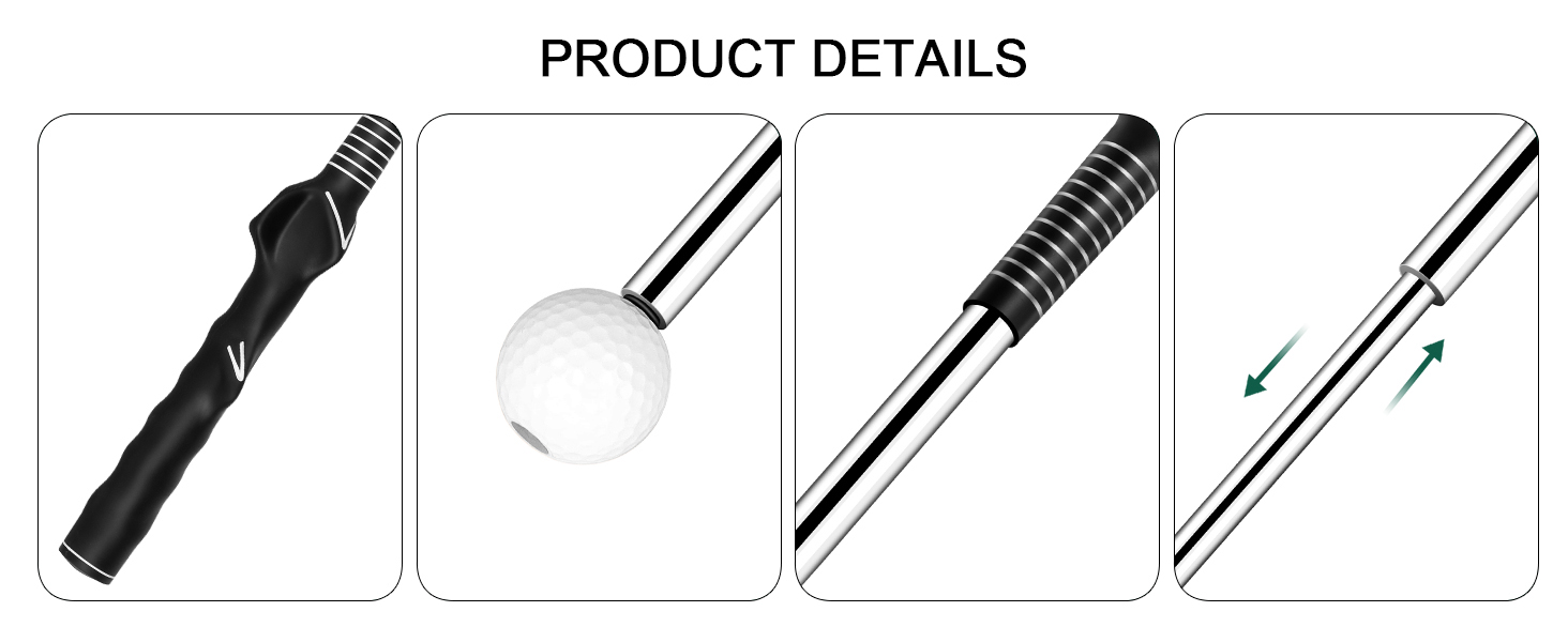 Stretchable Shaft:Made of special materials, the retractable shaft of the Golf Training Aid makes a simulated hitting sound when swinging. very realistic