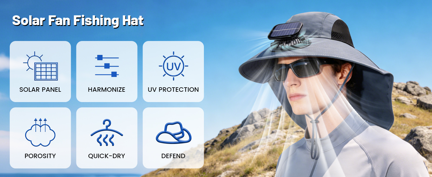 【USB/Solar Charging】This sun fan hat features a built-in solar fan in the brim. It automatically charges in bright sunlight and can be charged via USB on cloudy days,providing long battery life! Three wind speed settings allow you to say goodbye to the heat while night fishing,hiking,or cycling,focusing on every moment outdoors!