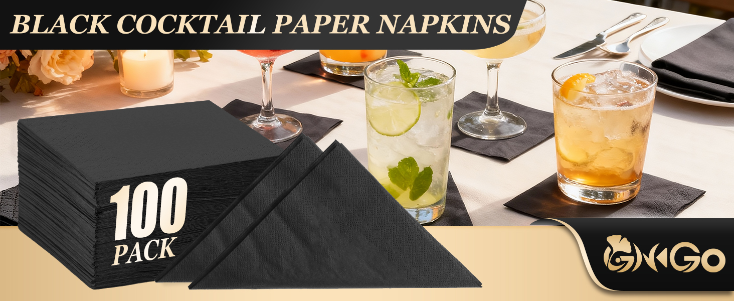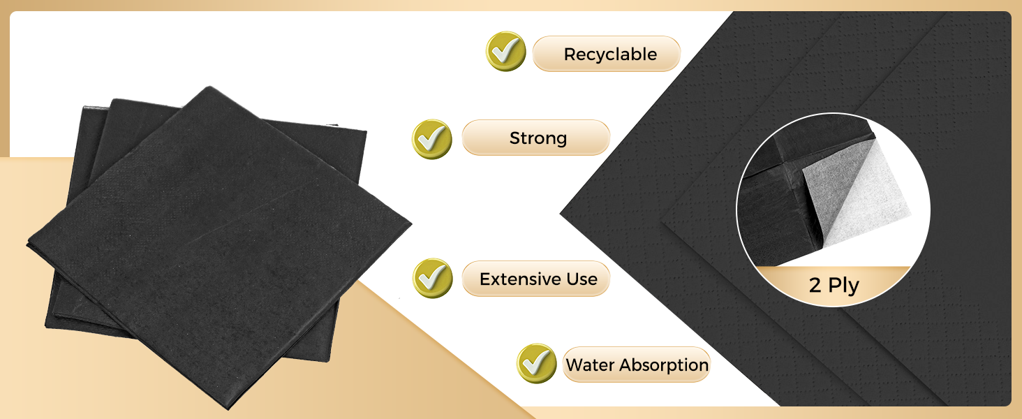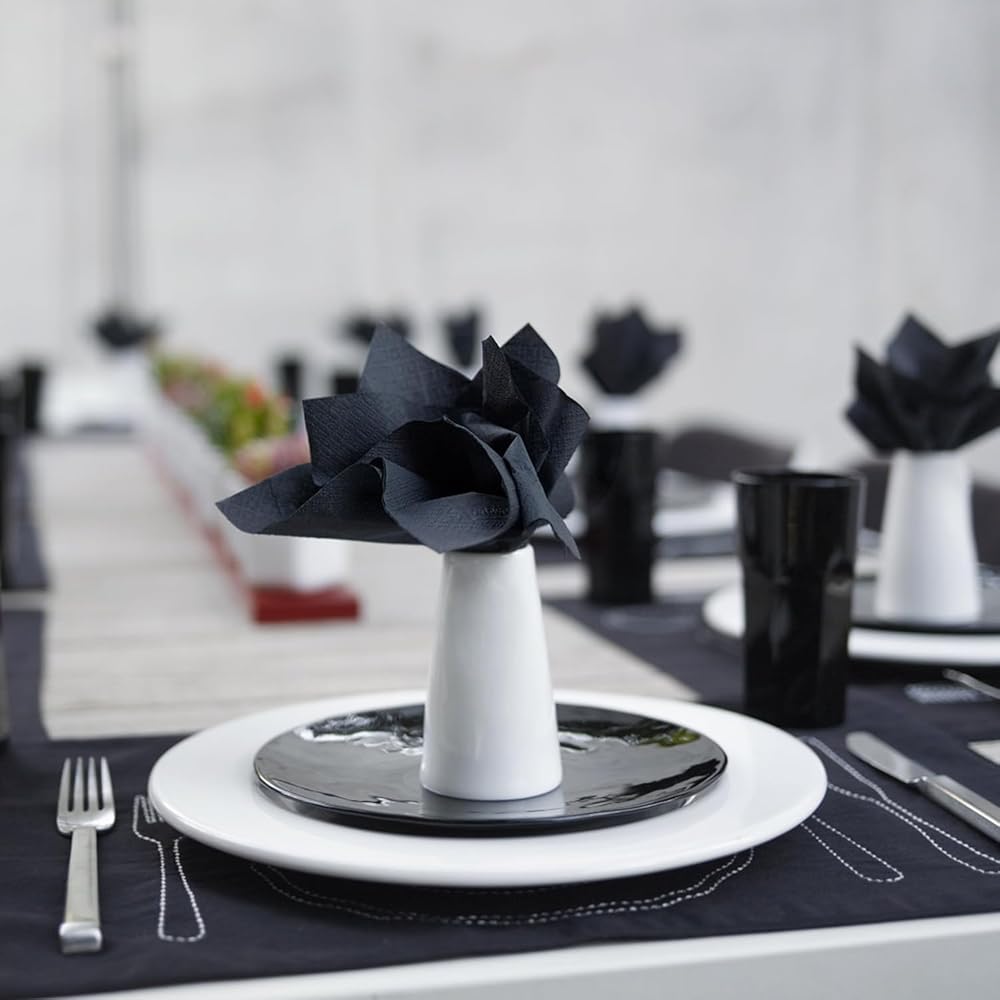 Sleek and Chic Black: Whether it's a fancy wedding or a laid-back party, these black napkins bring a dash of sophistication that's versatile enough to match any theme—because style matters, even when it's just a napkin.
